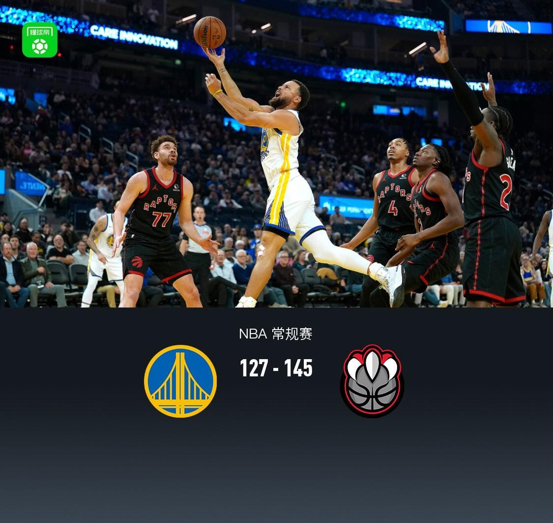 第四节,开节猛龙英格拉姆领衔持续冲框再度拉大至21分,随后勇士斯潘塞、希尔德、库明加再度掀起一波反扑节中追至9分,但很快猛龙英格拉姆、马穆三分稳住局面,紧跟奎克利、巴恩斯再度得分领先至8分,比赛彻底失去悬念,全场结束,勇士127-145不敌猛龙。